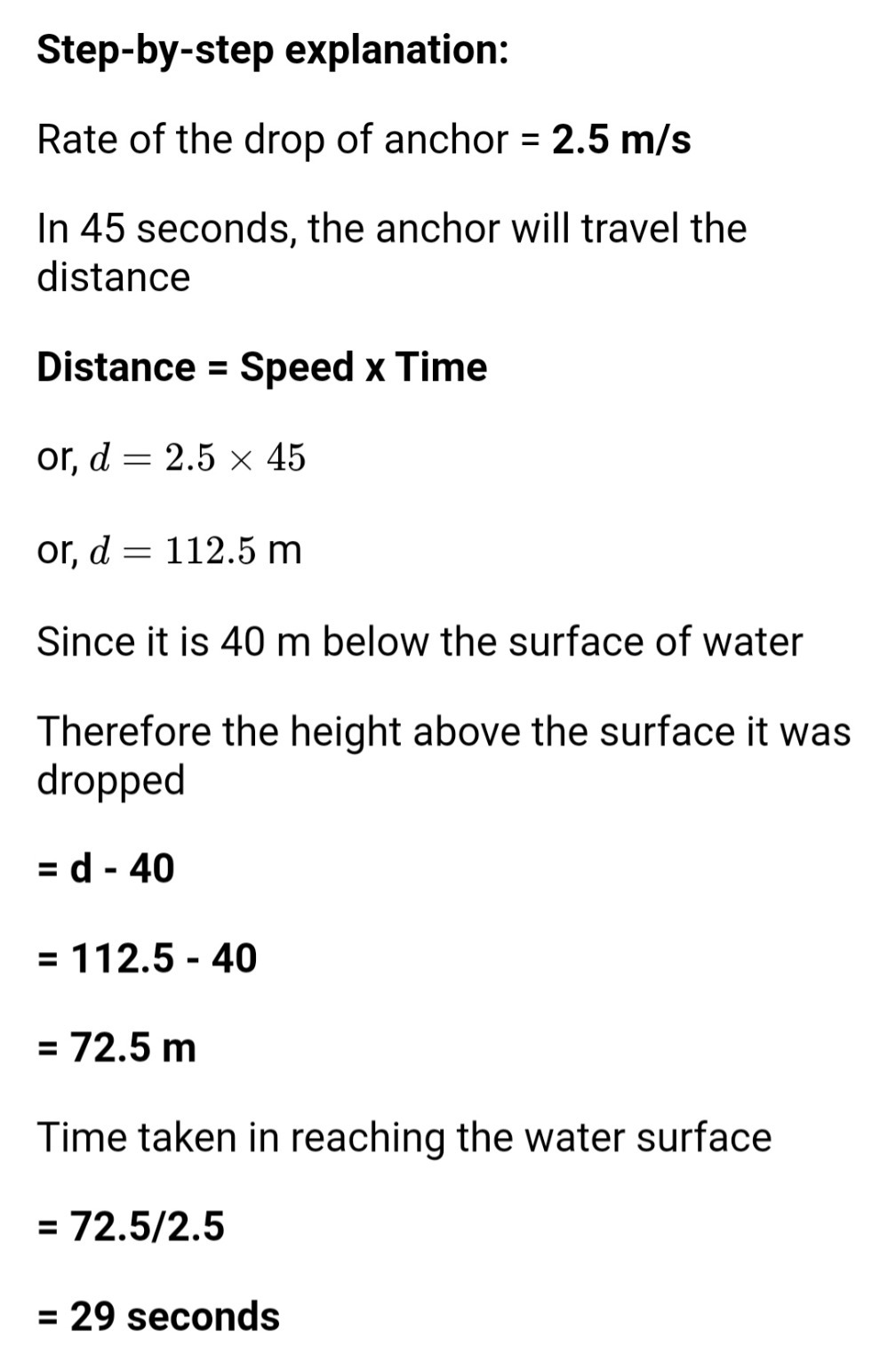 A Big Cruise Ship Dropped Anchor Off . A big cruise ship dropped anchor off the caribbean island of barbuda. How long did it take the anchor the reach the water surface?