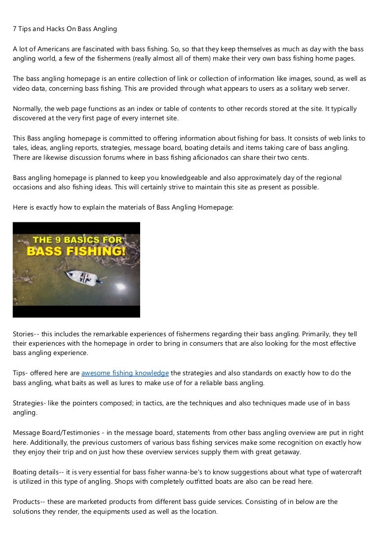 Bass fishing home page bass fishing is fascinated by lots of americans and in order to keep them updated about the. It ate everything and began to starve, so my people dug a river that connected they help us to know which pages are the most and least popular and see how visitors move around the site. Includes articles, videos, news, and forums for beginning to advanced anglers.